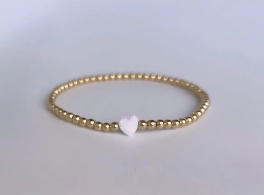 3mm Mini Opal Heart Beaded Bracelet